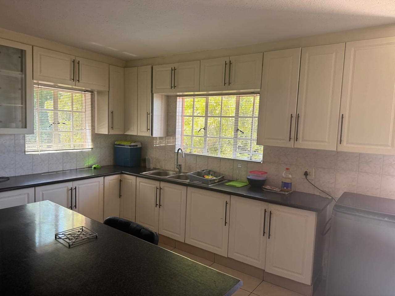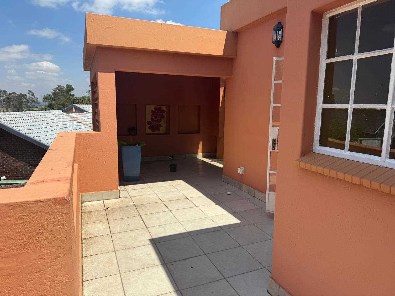 SPACIOUS to the extreme. You can house your family in absolute comfort and style in this townhouse, which also allows pets with permission. Make your way up the stairs entering into a huge lounge and dining room and then the kitchen is absolutely fabulous and just imagine this it has the added bonus of a fireplace, imagine congregating with family and friends around the dinner table in absolute warmth and comfort during those cold winter months. The kitchen also opens onto a huge balcony with built in braai. The three bedrooms are all a good size, one of which opens onto the upstairs balcony. All the bedrooms have built in cupboards. The main bedroom has en suite shower and the guest bathroom also has shower and the other amenities needed. There is a lock up garage. There are only three units in the complex. Well situated in a quiet street, but not far from shops and schools. Don't sleep on this one. Call now to make an appointment for a viewing.